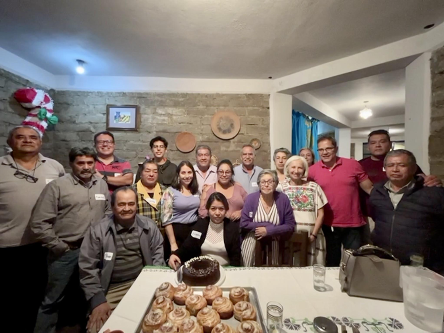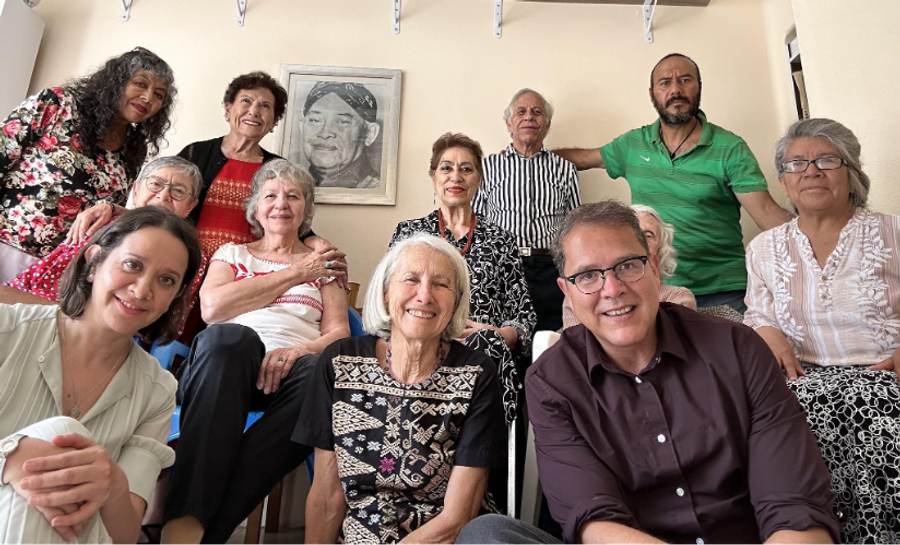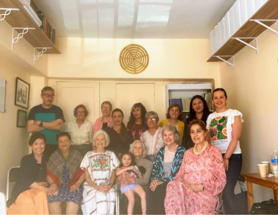 This photo of Kohar, Joan and Illène shows the adobe bricks made by hand by the Tlaxcala group members. Both Joan and Illène had attended the grand opening of this hand built Subud home in 1999 as part of an Americas gathering. The male KC, Ramon, is in this group as well as one of the women National helpers.